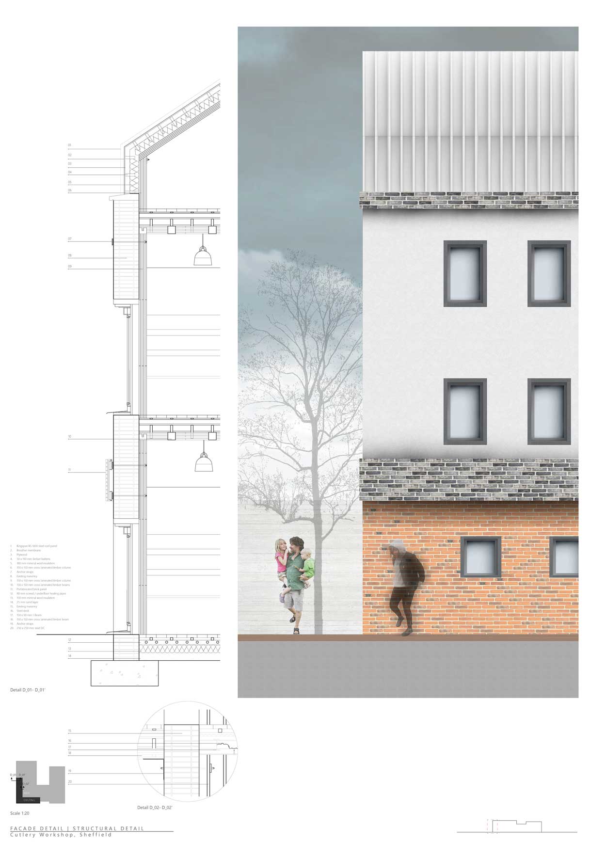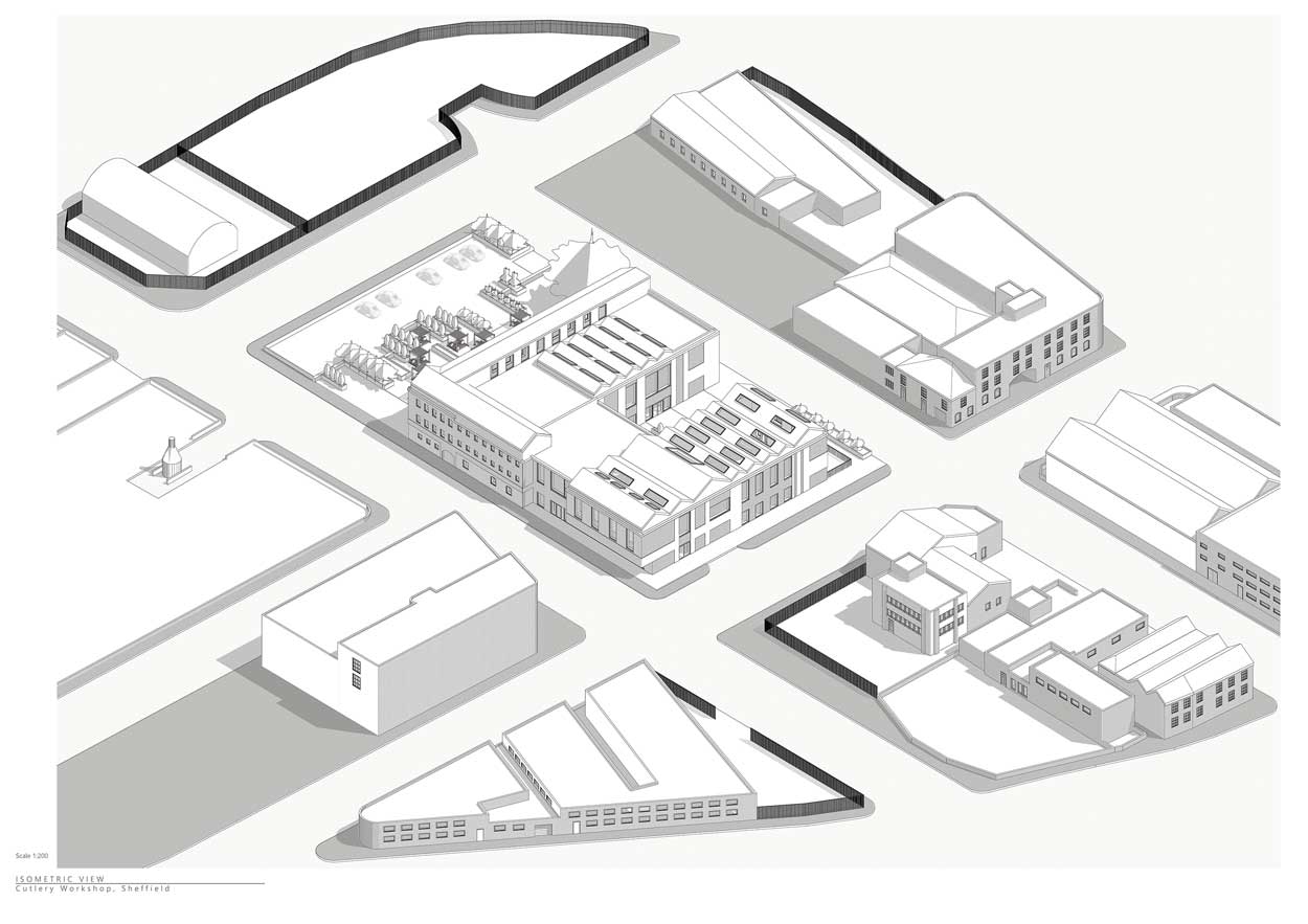 Το προτεινόμενο, σύγχρονο βιομηχανικό μοντέλο στην πόλη του Sheffield εξειδικεύεται στα μαχαιρικά είδη μοιράζοντας την διαδικασία κατασκευής τους σε δυο μέρη: τη μαθητεία (κατανοώντας την διαδικασία έως το τελειωμένο προϊόν) και την βιομηχανοποίηση τους (είτε με τεχνολογικά μέσα η χειροτεχνικά). Διαχωρίζοντας τις ζώνες παραγωγής, ο πυρήνας της πόλης θα έχει την ευκαιρία να καλωσορίσει ξανά το ταπεινό εργαστήριο ως ένα αστικό φαινόμενο το οποίο ευελπιστεί να ενισχύσει τον βαθύτερο όρο της ‘κοινότητας’, ο οποίος νοσεί στο Sheffield. Το εργαστήριο του σήμερα, σκοπό έχει να ενώσει την τεχνολογία και την χειροτεχνία μέσα από την παράδοση της πόλης, την κατασκευή μαχαιρικών ειδών. Τα εργαστήρια αυτά, μέσα από την μάθηση , μπορούν να επεκτείνουν τον ρόλο τους γεννώντας πρωτοπόρες τεχνικές οι οποίες μπορούν να ξεκινήσουν start-ups και μικρές επιχειρήσεις.