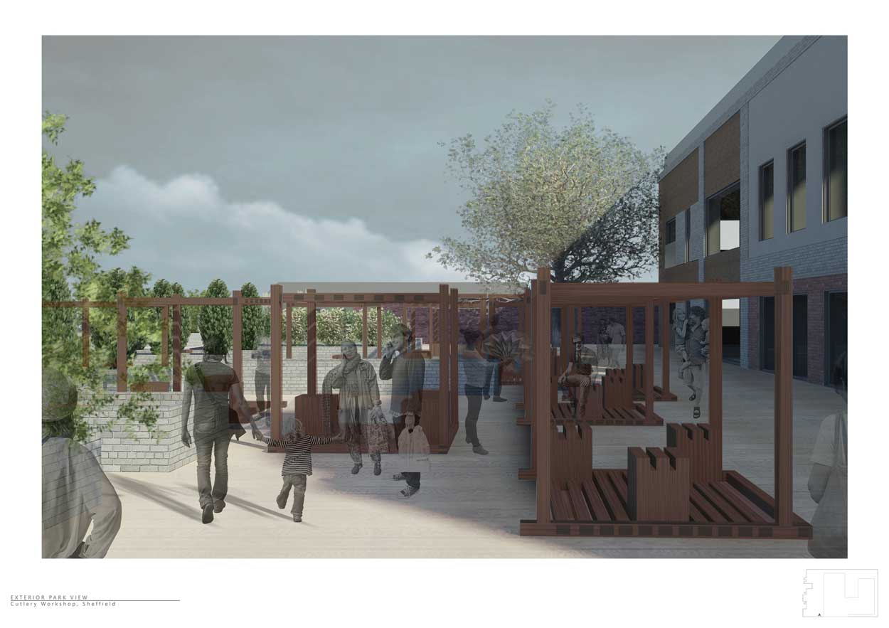 The proposed, modernised industrial model in Sheffield traditionally specialising in cutlery, aims to dissect the manufacturing process in two parts: the apprenticeship (in understanding the journey towards a finished craft) and the manufacturing (this is a technological or a handcrafted process). In sectioning the interdependent zones; the city centre can re-embrace the workshop as an urban phenomenon that will pursuit stronger community bonds. This will fight against unemployment rates and the deprived centre of Sheffield. The workshop culture needs to be dissociated from its original purpose of teaching handcrafts and transform into a dual concept; that of technology and handcraft coexisting. Through the making and learning, the workshops can extend their purpose and drive innovative techniques that can initiate start-ups and small businesses.