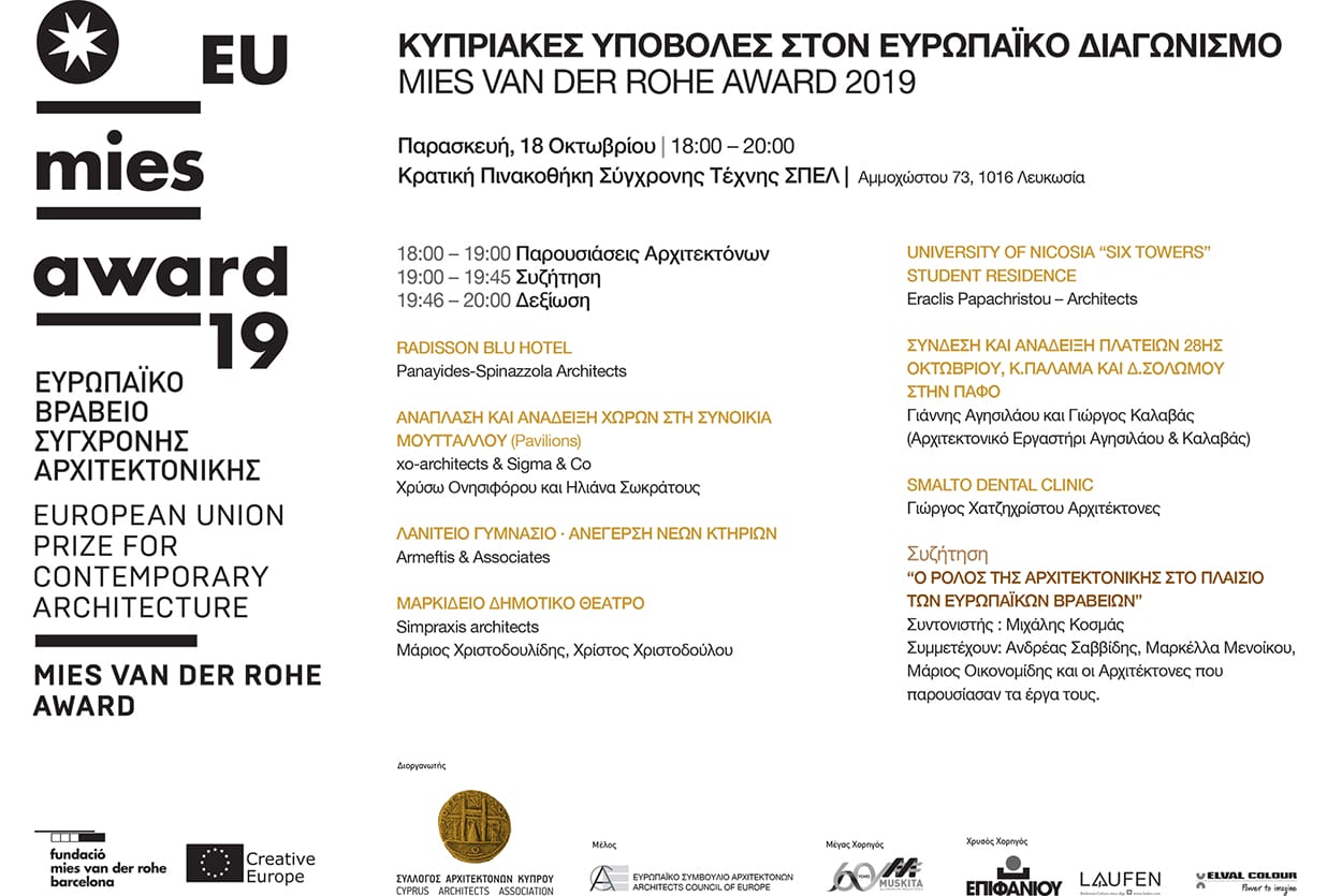 ΚΥΠΡΙΑΚΕΣ ΥΠΟΒΟΛΕΣ ΣΤΟΝ ΕΥΡΩΠΑΪΚΟ ΔΙΑΓΩΝΙΣΜΟ MIES VAN DER ROHE AWARD 2019