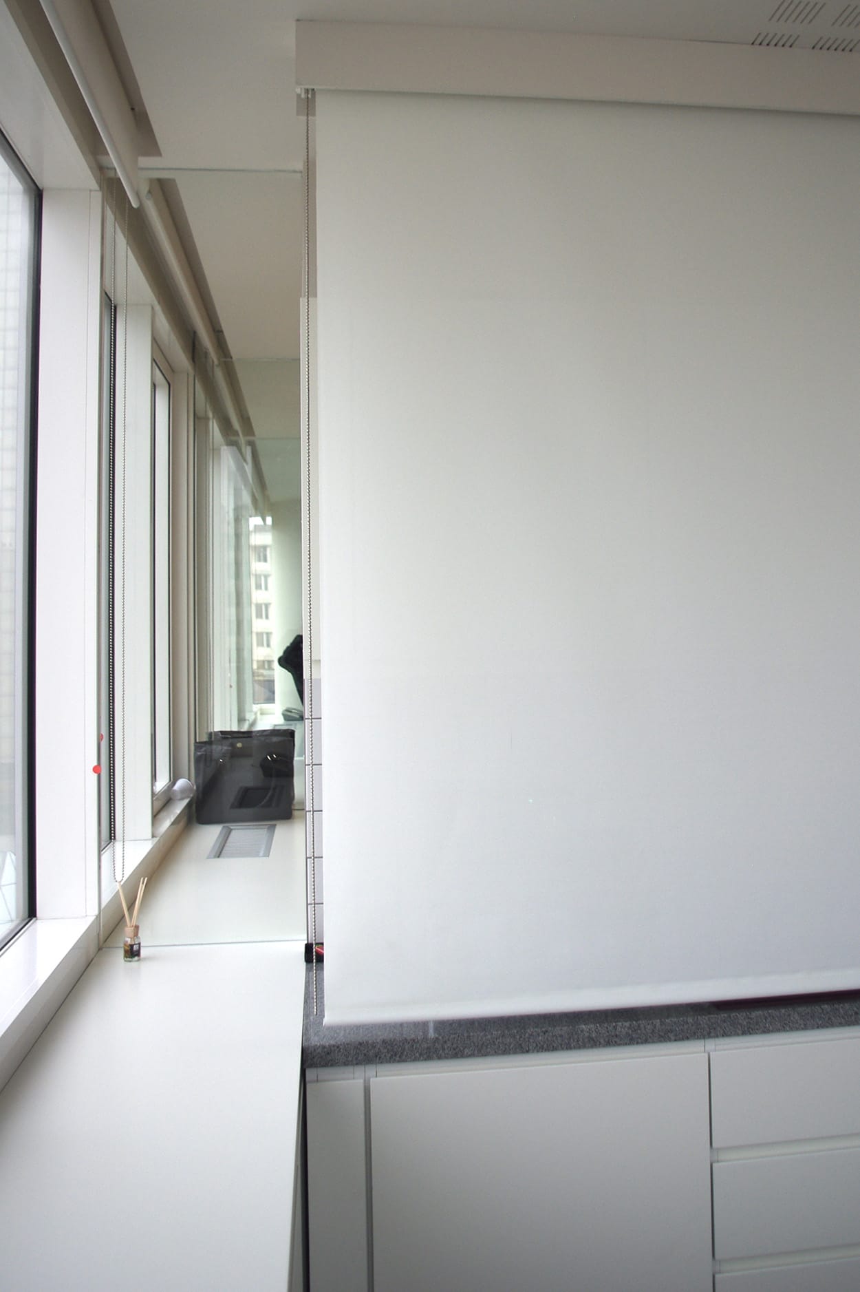 Ο υφιστάμενος κεντρικός πυρήνας καθόρισε τις δύο κάθετες μεταξύ τους γραμμικές αναπτύξεις (διαμόρφωση «Γ») εντάσσοντας έτσι όλους τους εργασιακούς χώρους στην περίμετρο του κτηρίου. Λόγω έλλειψης τετραγωνικών μέτρων και για να μην επεκταθούμε σε άλλη περιοχή του ορόφου, η κουζίνα έχει σχεδιαστεί για να μπορεί να μεταλλάσσεται σε ένα δεύτερο χώρο συνεδριάσεων με τη χρήση ανεγειρόμενων πανέλων. Ο ωφέλιμος χώρος που τελικά χρησιμοποιήσαμε έφτασε στα περίπου 300 τ.μ.