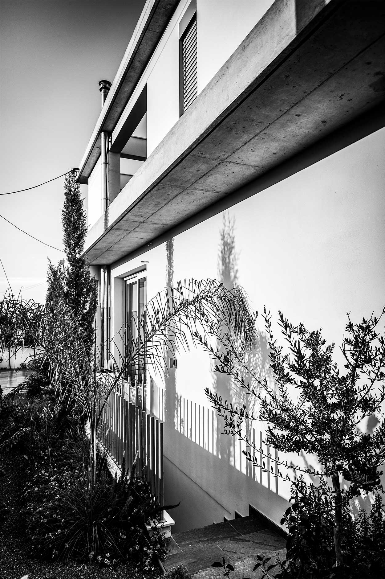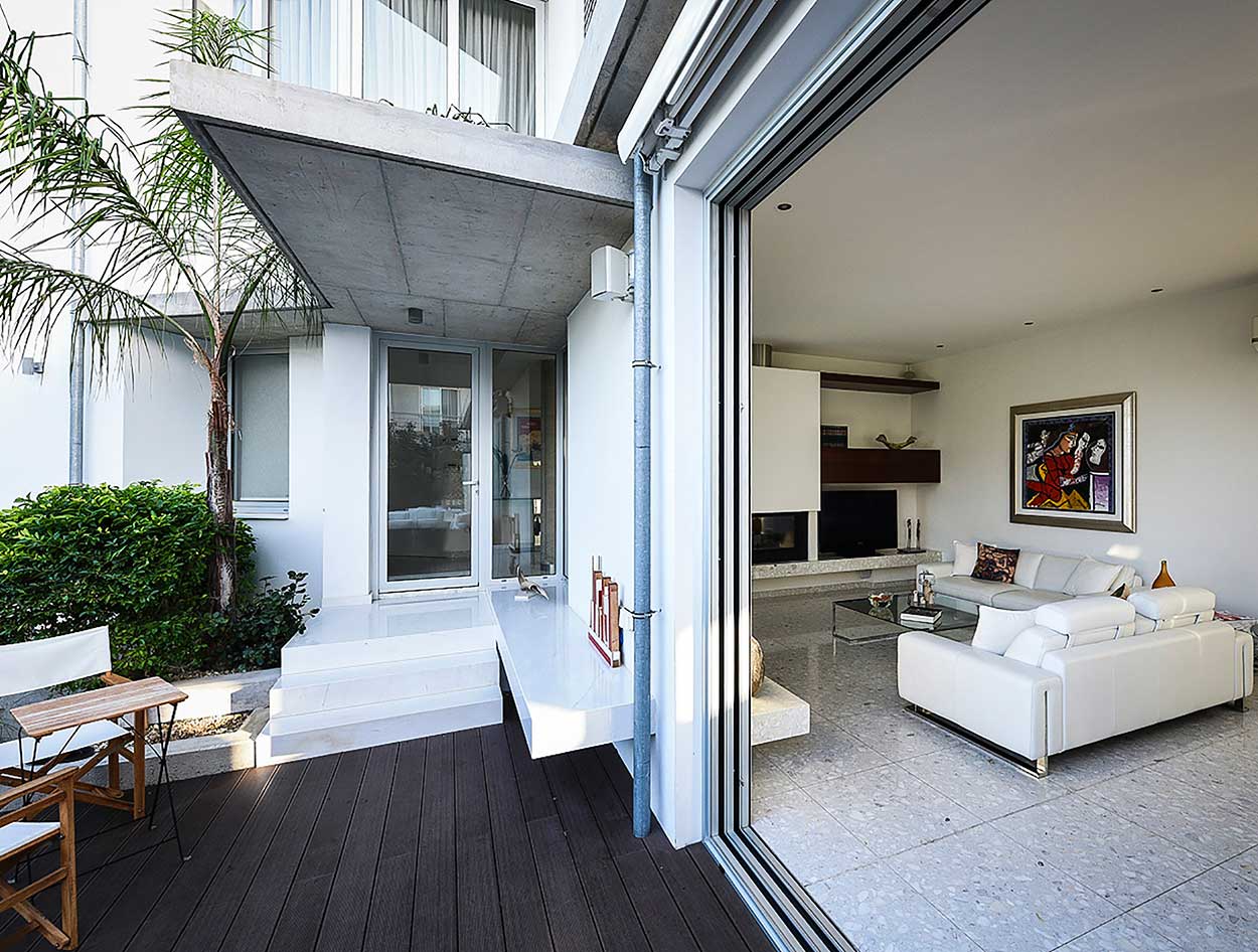 The concept was based on the owners’ needs which, however, coincided with the architect’s office research regarding the relationship between indoor and outdoor (taking advantage the local climate) so much in regards of the movement as well as of the views. The spatial organization was arranged in an L-shape providing, thus, privacy and opening up the building towards the garden and pool. This, allows for the visual and the experiential relationship of the body in the interior of the house with the exterior, which, in turn, appears as entering the house. From the moment the visitor enters the hall of the house, he/she founds oneself immediately in the garden, through the framed views.