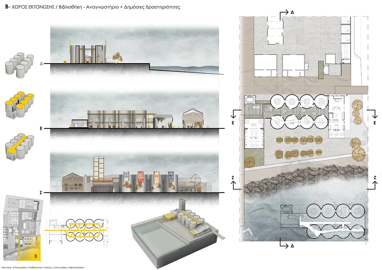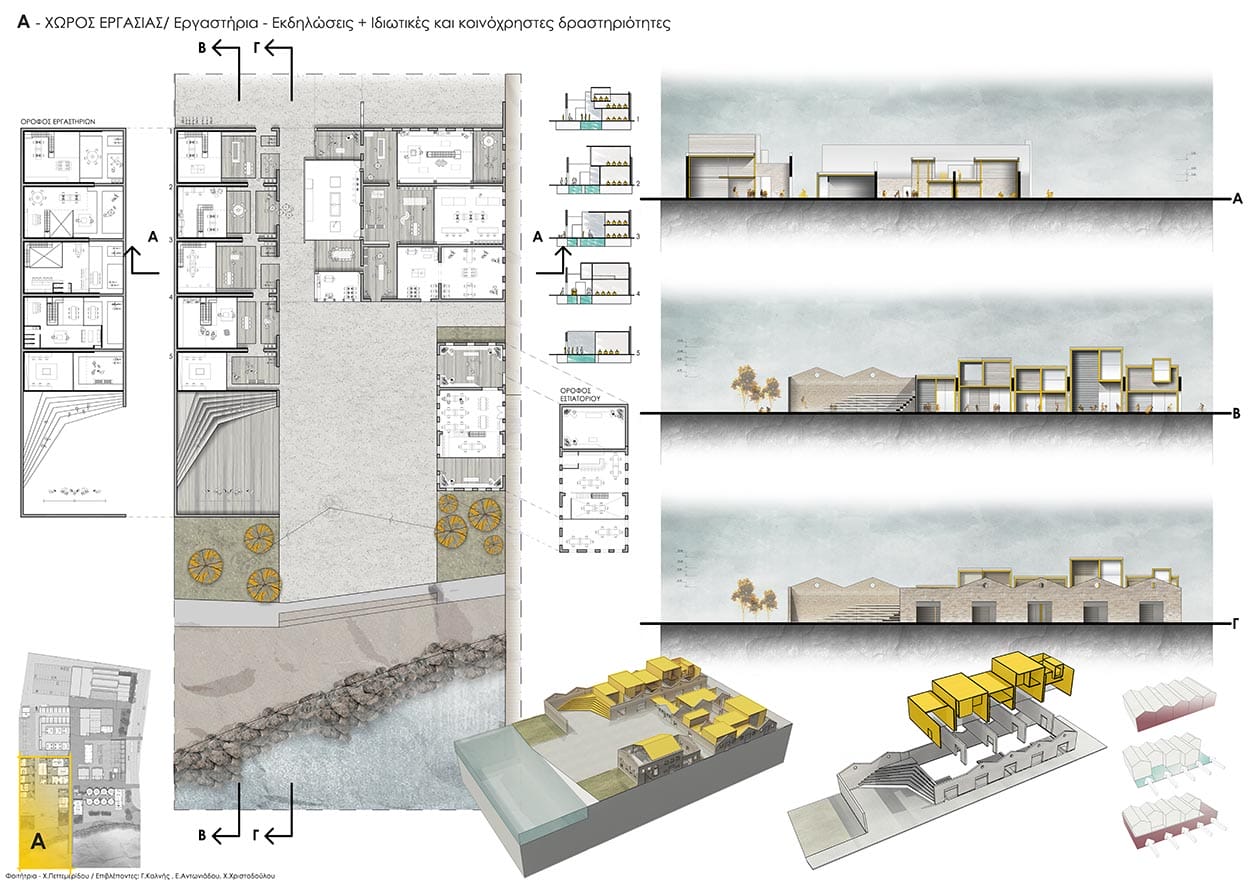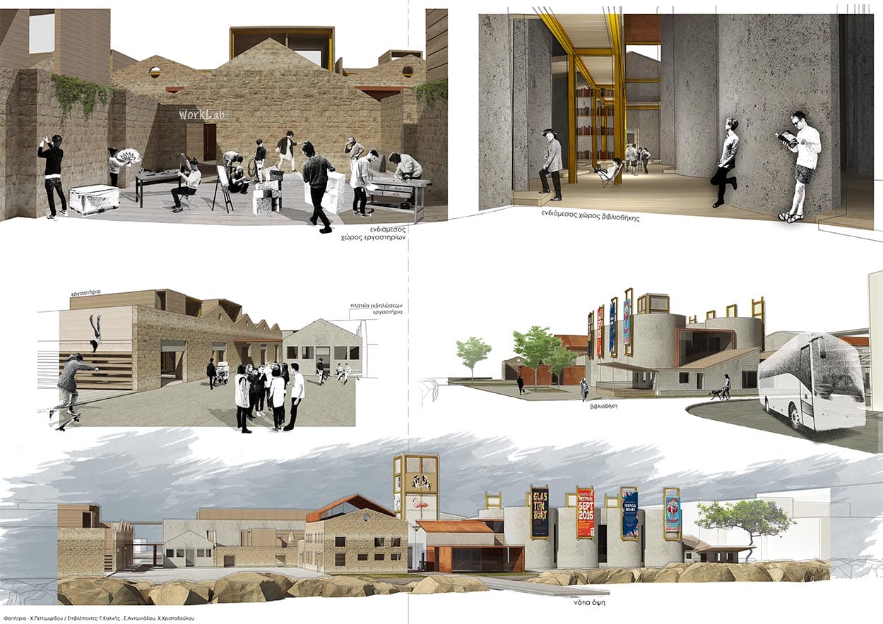 The project concerns the composition of an autonomous community, as well as the motivation of reorganizing the current-(pre)existing complex of the wine industry, “S.O.D.A.P” (cooperative organisation of vine products supply), with the workplace being the main element. Two cases concerning the autonomous community in the work field [atolye + exrotaprint], were spatially studied, while also the design element was studied through adaptive reuse. This proposal aims to create new, yet dynamic spatial statuses, which reinforce the collective approach.
