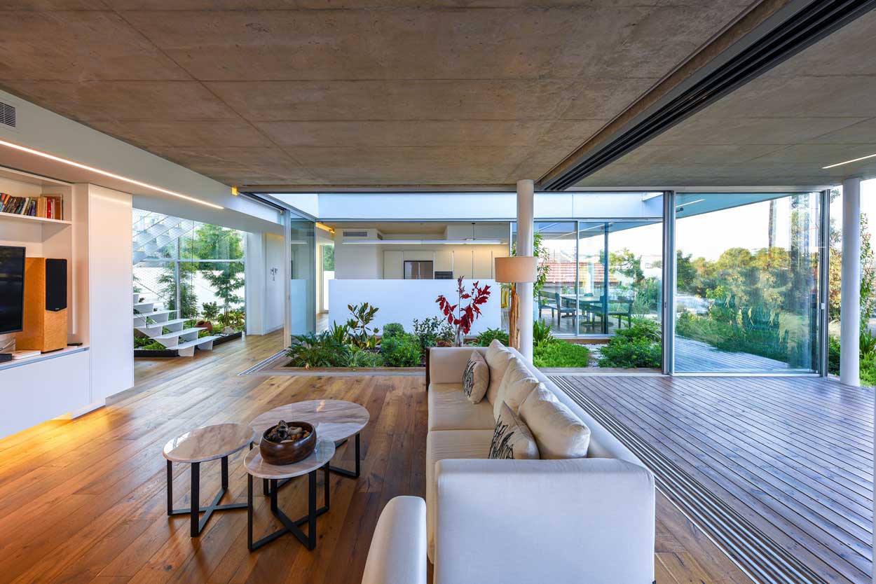 Βασικό κομμάτι του σχεδιασμού αποτέλεσε η ανάπτυξη κήπων τόσο στο ισόγειο όσο και στον όροφο, όπου αντί συμβατικών βεραντών τοποθετήθηκε φυτεμένο δώμα, το οποίο είναι προσβασιμο.