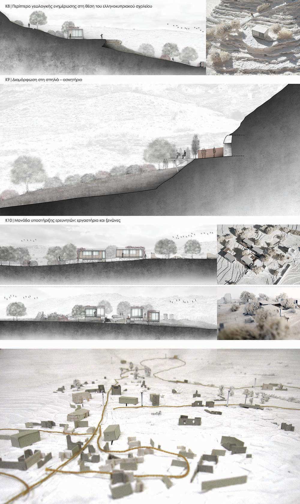 Acknowledging that history is not static but in constant progress, a supporting unit for researchers and archaeologists is placed in order to give continuity in the progress of revealing the historical fragments as well as to keep people informed of their new findings. Consequently, apart from an open-museum, Ayios Sozomenos is converted into an “active laboratory” where different social groups get involved and reinforce the recovery of its diverse cultural character.