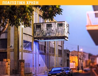 Ένα περίεργο ξένο σώμα φαίνεται να έχει προσκολληθεί στη νότια όψη του Δημοτικού Κέντρου Τεχνών. Αρκετά ψηλά, σαν μια ακόμη απόφυση, φαίνεται να προεξέχει κάθετα στον τοίχο, σαν μια τεράστια φωλιά ενός μηχανικού πουλιού.